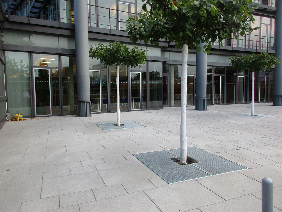 Das Hauptaugenmerk liegt auf der Bepflanzung, der Gestaltung der Wasserflächen und der kleinteiligen Natursteinpflasterung.