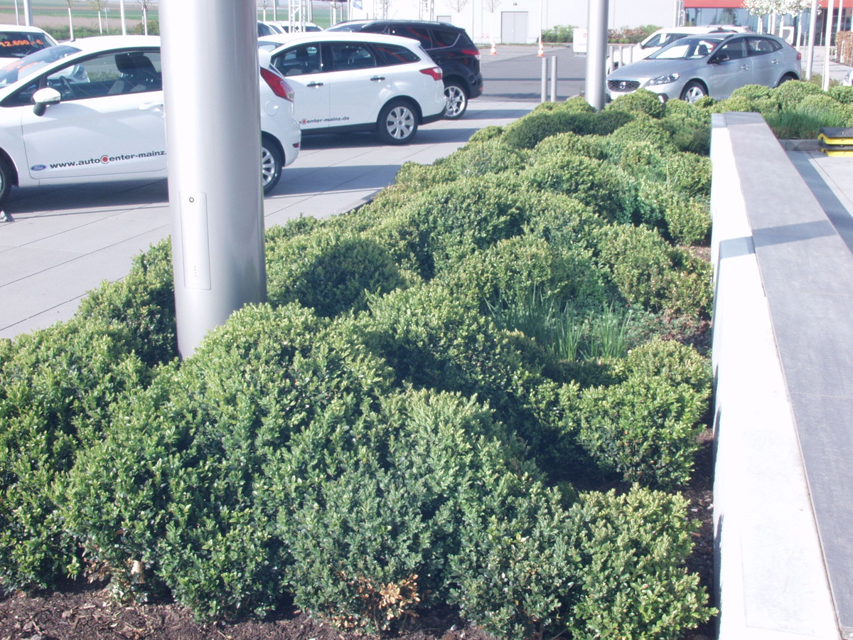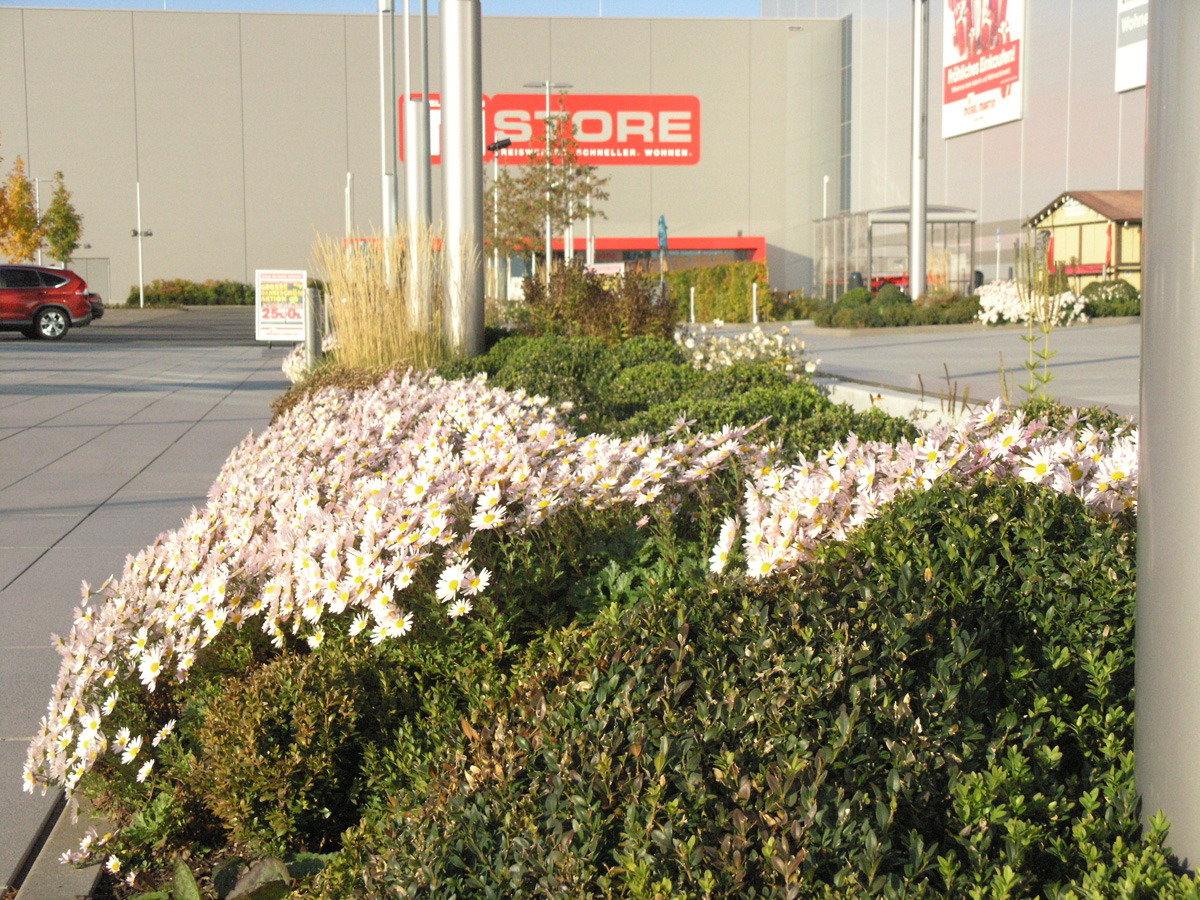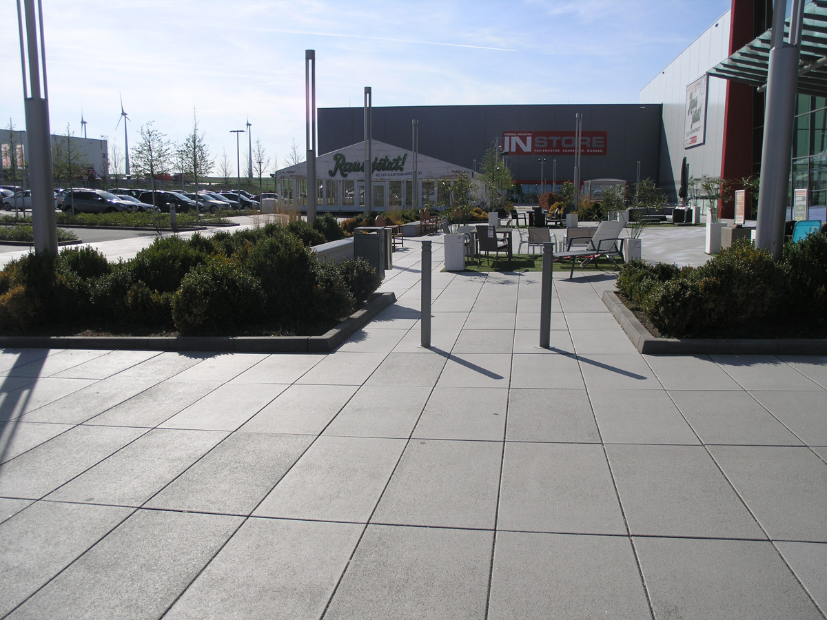 Nach den Vorgaben des B-Plans der Stadt Mainz und der Baugenehmigung sind strukturierte Außenanlagen entstanden.